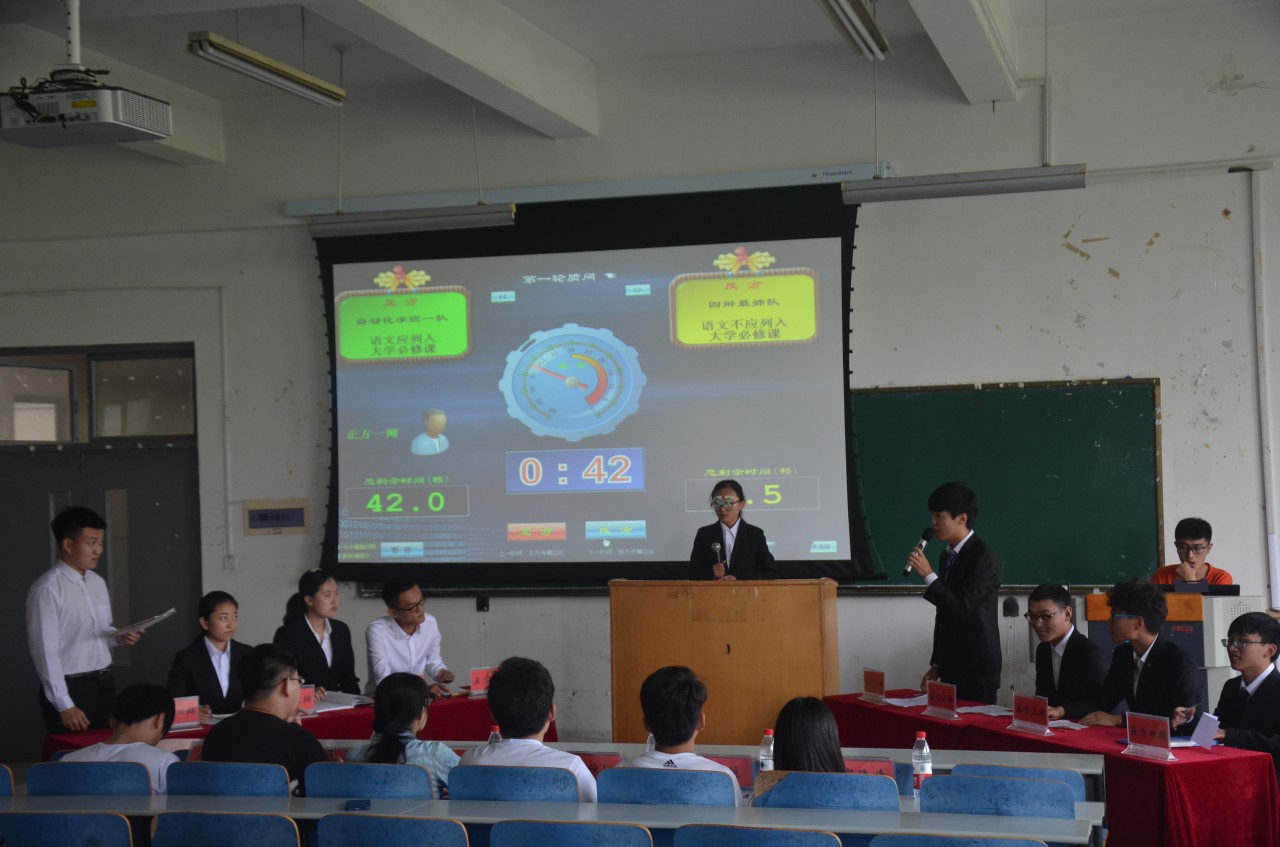 本次决赛共有4支队伍参加。首先上场的是来自beat365英国官方网站的“自动化五班队”与来自电子学院的“四辩最帅队”,他们的辩题是:大学语文应不应该成为必修课程。比赛过程中,双方选手在立论、驳论等各个环节中思路清晰、引经据典,字字珠玑,使现场气氛迅速升温。在随后进行的自由辩论环节中,双方选手就辩题展开更深层次的辩论,个个妙语连珠、舌绽莲花的辩论一次次将比赛推向高潮,也点燃了现场气氛。现场观众还未从第一场的精彩辩论中缓过神来,来自beat365英国官方网站的“电气一班队”与来自电子学院的“就是很队”就开始了第二场的比赛。他们的辩题是:文化传承需不需要融入潮流。双方辩手并没有因为上一场的精彩比赛而影响自己的思路,双方你来我往、侃侃而谈,纷纷对辩题提出自己的观点,观众们不时响起的掌声更是将气氛一次次推向高潮。