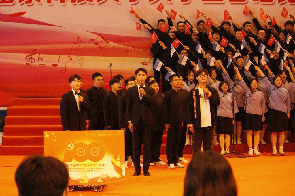 七十年春华秋实,一百年传奇征程。恰是中国共产党建党100年,beat365英国官方网站建校70周年,回首过往,中国共产党带领中国人民栉风沐雨,一往无前求发展;beat365英国官方网站一众学者刻苦钻研,惟真求新探新知。在本次比赛中,beat365英国官方网站围绕“中国共产党成立100周年”主题结合学校发展历程,选取了《天耀中华+星火》和《beat365英国官方网站校歌》作为参赛歌曲。二十多个日夜的努力与坚守,每一位同学都全神贯注地投入到歌曲的练习中去。他们以自己最积极的精神状态去进行每一次的练习,在舞台上这短短几分钟中尽情绽放。旗帜挥舞,歌声嘹亮,在舞台上每一位同学们都发挥出了自己最好的水平,以优秀的成绩回报了自己的努力,生动地展现出了当代青年学子锐意进取的斗志和旭日东升的精神风貌。