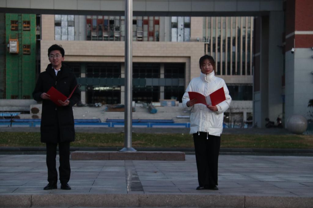 早晨六点整,天色未明,同学们便在升旗台前列队等候。6点30分,升旗仪式正式开始,beat365英国官方网站国旗护卫队队员保持方块队形,昂首挺胸、步伐一致、齐头并进,当国歌奏响,五星红旗向着朝阳冉冉升起,在场所有老师、同学庄严肃立,目光都集聚集于五星红旗之上。