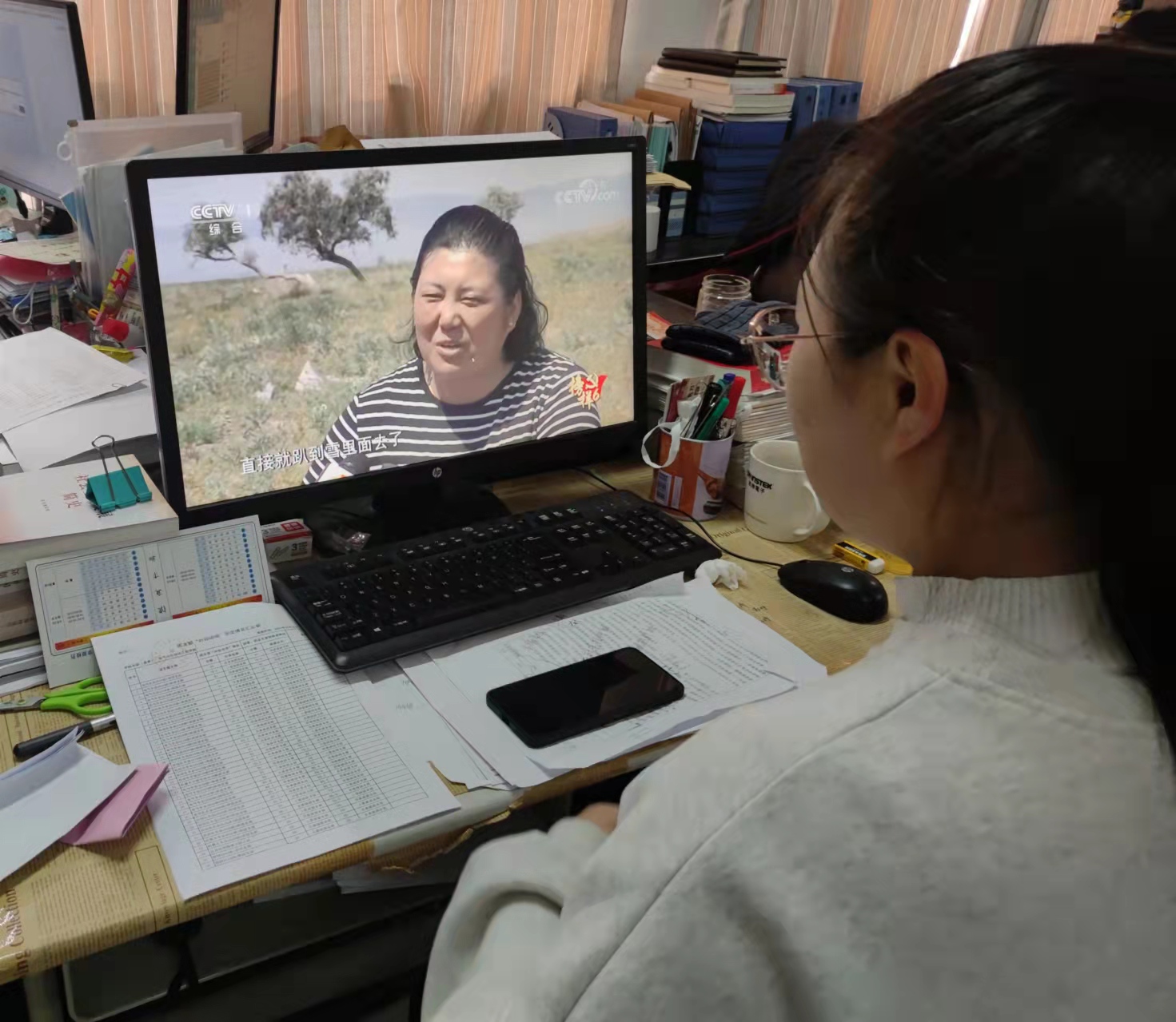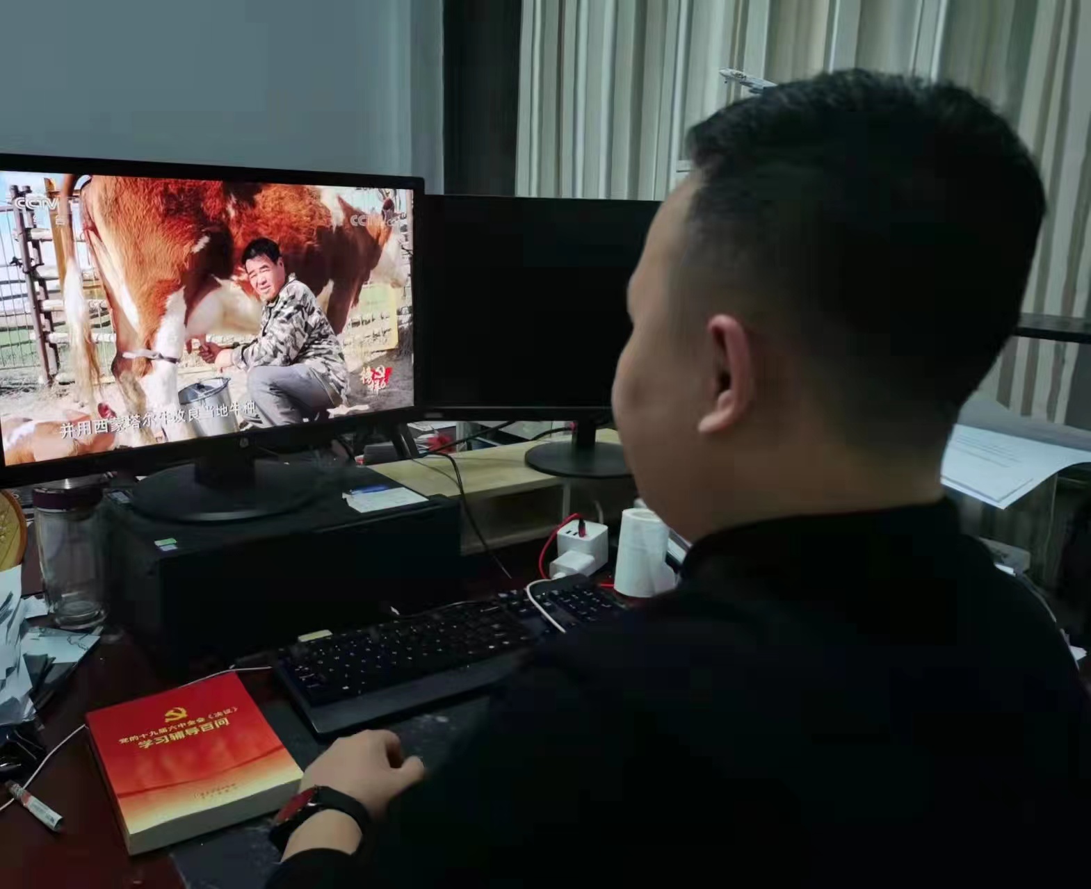 在观看过程中,学生党员干部精力集中,随手记录下心得体会。