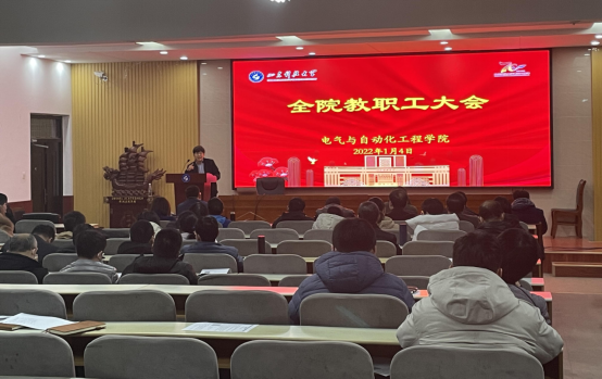 1月4日,学院在泰山报告厅组织召开全体教职工大会总结部署工作,全院教职工参加了会议。党委书记庄立臣主持会议。