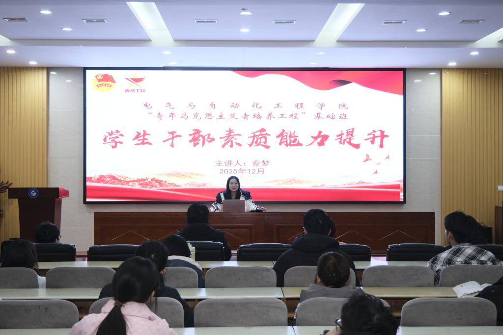 12月29日,beat365英国官方网站2025-2026学年“青马工程”基础班在J11-118举办学生干部素质能力提升专题培训,本次培训由秦梦担任主讲人,全体青马学员、学院团支部委员参与学习。